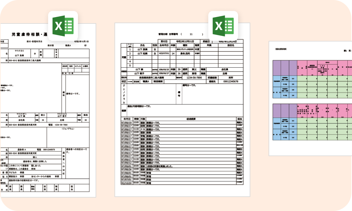 管理票、相談通告受付票、統計などの帳票をExcel形式で出力します。